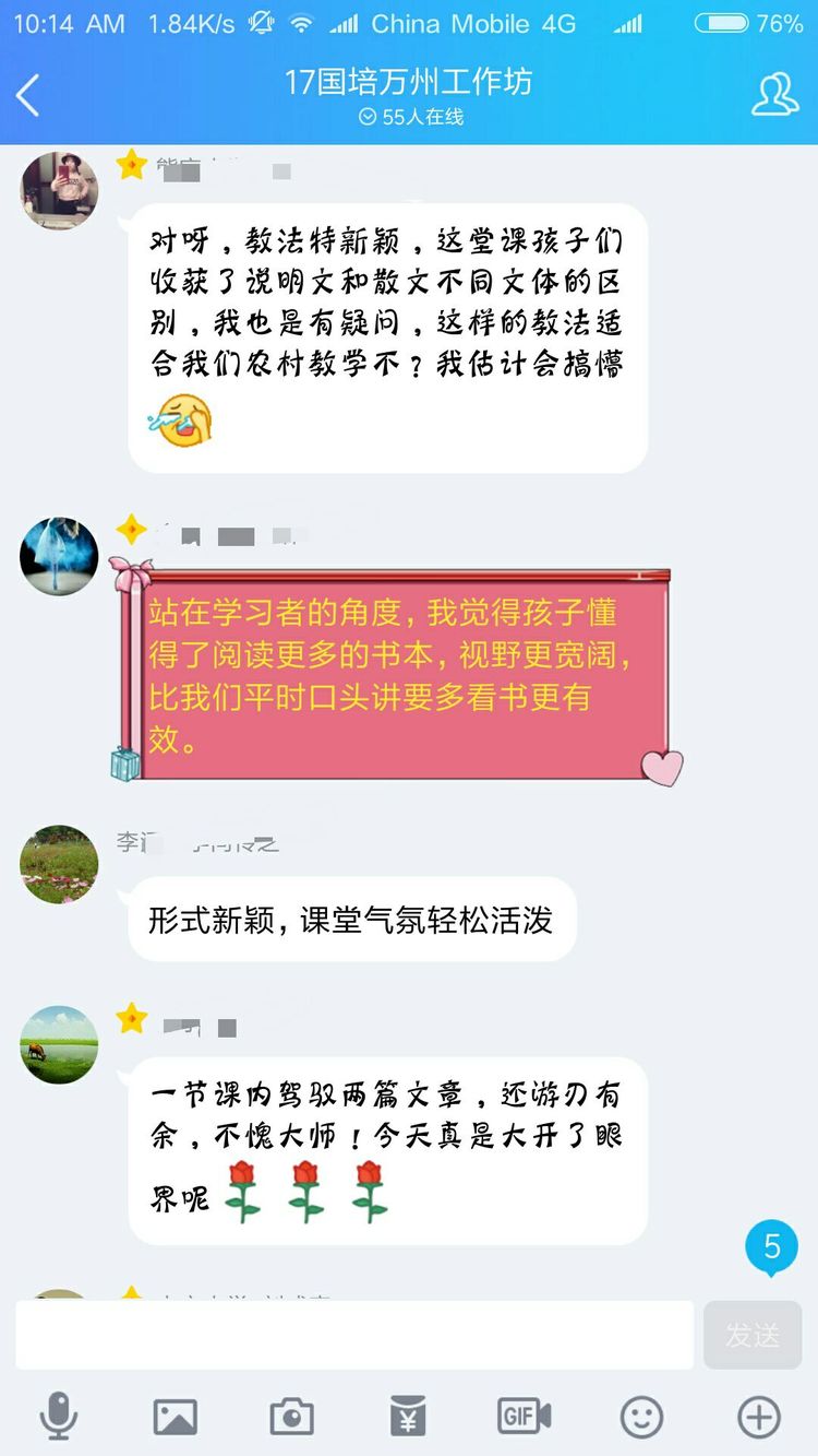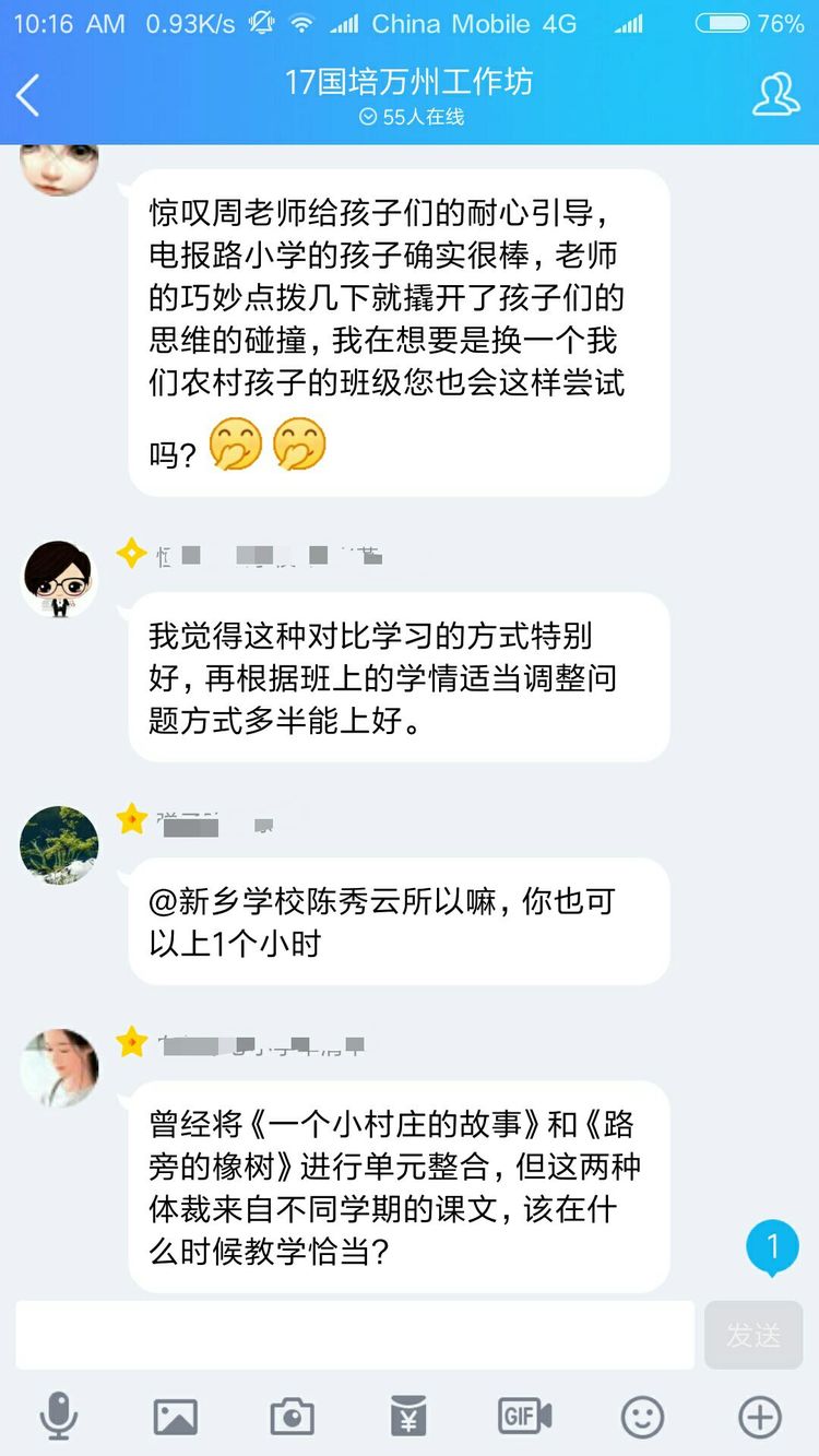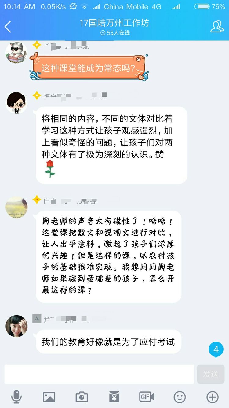 當然不是啦,認真參加培訓的老師們怎么舍得玩手機呢。其實是周奇老師讓大家對現(xiàn)場教學進行點評,讓每一位老師將點評文字發(fā)在QQ群里,然后對參訓老師一一解答疑問。以下分享老師們的點評