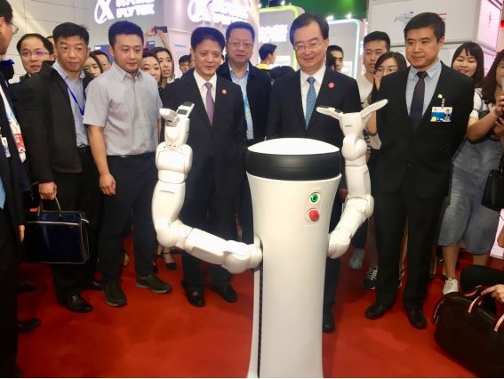 領(lǐng)導(dǎo)視察一維弦自主研發(fā)的機器人MoRo