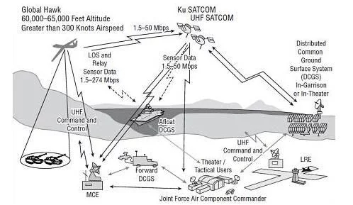 數(shù)據(jù)鏈傳輸系統(tǒng)是無人機(jī)的重要技術(shù)之一,負(fù)責(zé)完成對(duì)無人機(jī)遙控、遙測(cè)、跟蹤定位和傳感器傳輸,上行數(shù)據(jù)鏈實(shí)現(xiàn)對(duì)無人機(jī)遙控、下行數(shù)據(jù)鏈執(zhí)行遙測(cè)、數(shù)據(jù)傳輸功能。普通無人機(jī)大多采用定制視距數(shù)據(jù)鏈,而中高空、長(zhǎng)航時(shí)無人機(jī)則都會(huì)采用視距和超視距衛(wèi)通數(shù)據(jù)鏈。