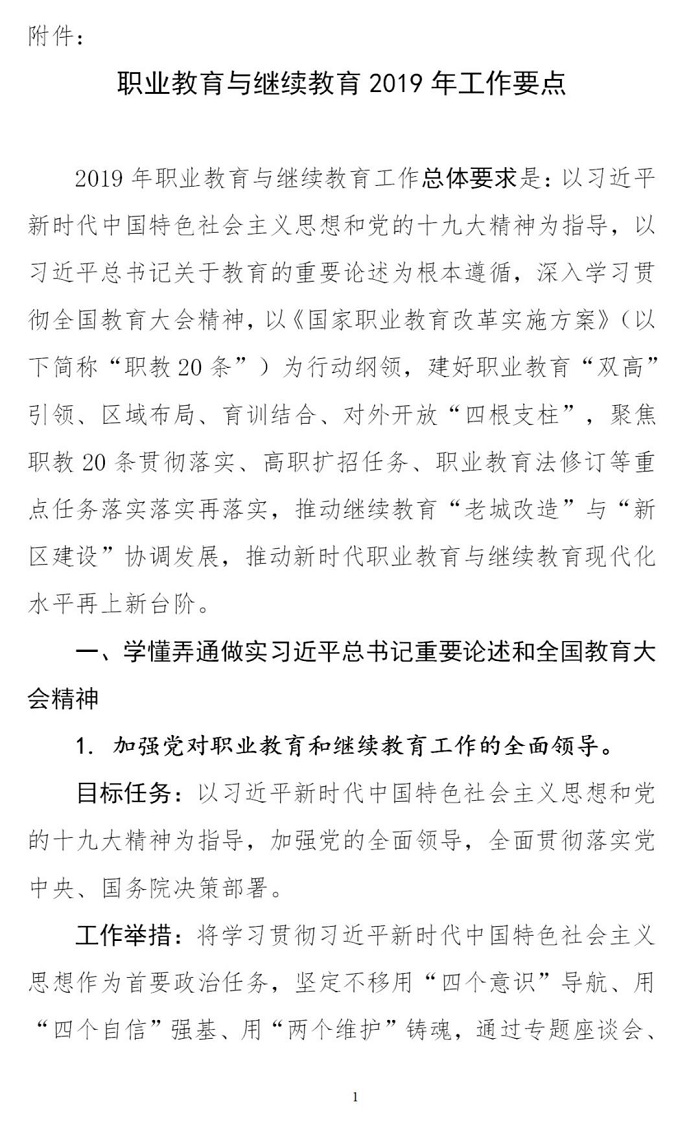 附件:職業(yè)教育與繼續(xù)教育2019年工作要點