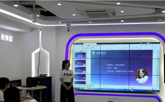 會議開始教學發(fā)展部的市場組和項目運營組總結并匯報了半年度工作情況,