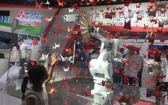 一個(gè)唄476只紙鶴包圍的機(jī)器人手臂,手持紙扇翩翩起舞的同時(shí),成功避開(kāi)了周?chē)屑堹Q