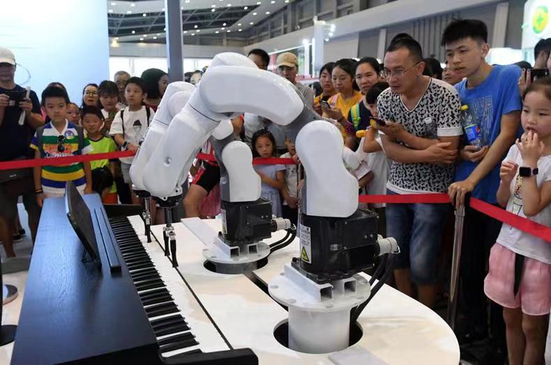 機(jī)械臂樂(lè)隊(duì)”在智博會(huì)上演奏鋼琴曲。