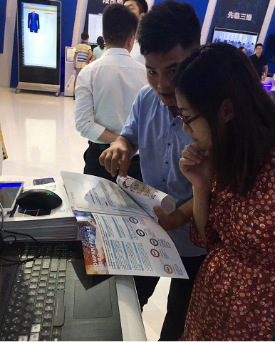 觀(guān)眾在智博會(huì)現(xiàn)場(chǎng)體驗(yàn)服裝行業(yè)的“一分鐘換裝技術(shù)”
