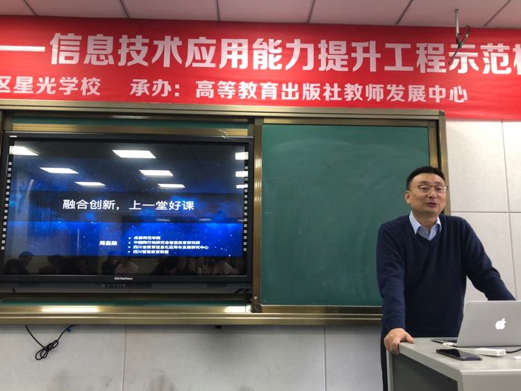 接著成都師范學(xué)院網(wǎng)絡(luò)與信息中心主任周鑫燚教授以“融合創(chuàng)新,上好一堂課”為主題,對(duì)老師們進(jìn)行了培訓(xùn)。周教授讓我們明白作為一個(gè)新時(shí)代的教師,我們應(yīng)該形成工具意識(shí),利用工具提高我們的課堂效率,但工具不能留于表面,要真正的融合進(jìn)我們的課堂,自然而然的作用于我們的課堂。